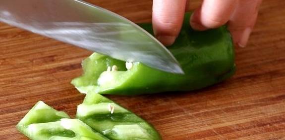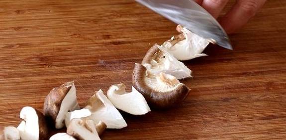 鸡肉剁成小块,香菇切小块。青椒切滚刀备用。