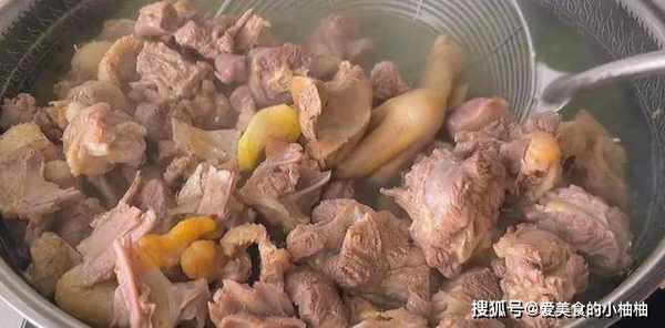 5.全部撇干净之后,继续煮2分钟,用漏勺将鹅肉控水捞出,剩下的原汤也不要倒,待会留着还有用。