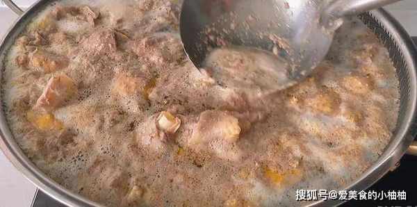4.煮开之后,用勺子将血水撇干净,这也是主要的腥味来源。