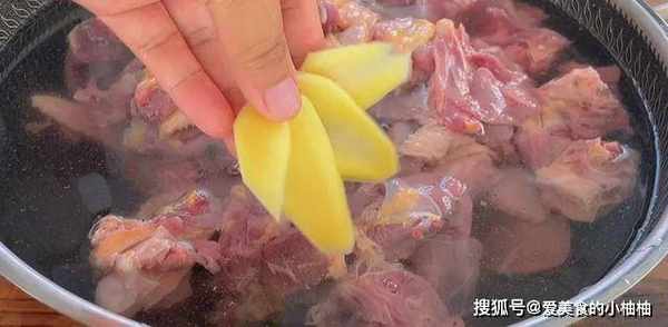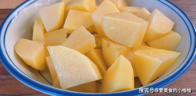 12.鹅肉炖着的同时,来切一些配菜,配菜我选的是土豆,大家可以根据个人喜好自行选择,土豆去皮后,切滚刀块备用。
