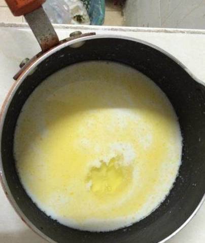 1.无盐黄油10克,隔水融化。黄油我将用在奶馅中,这会让馅料的奶香味更浓。