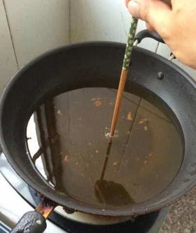 7.锅里热油,我们将用5成油温(约160度)来炸。判断方式是,将筷子插入油锅中,筷子四周有密集的小气泡,有轻微的哗哗声。一般,我们是这样判断油温的:把筷子插入油锅,筷子没有任何反应,油温在1-2成,适合炸花生米;把筷子插入油锅,筷子有稀疏的小气泡,油温在3-4成,适合滑炒肉丝、肉丁之类;把筷子插入油锅,筷子有密集的小气泡,油温在5-6成,适合呛锅,初炸之类的;把筷子插入油锅,筷子有大量气泡,会啪啪响,油温在7-8成,适合复炸之类的;把筷子插入油锅,筷子周边的油在翻腾,伴有爆炸声,油温约在9-10成,一般用来火爆肥肠,火爆猪肝之类的。