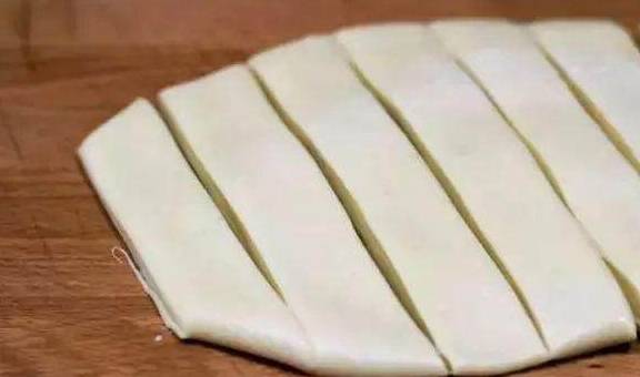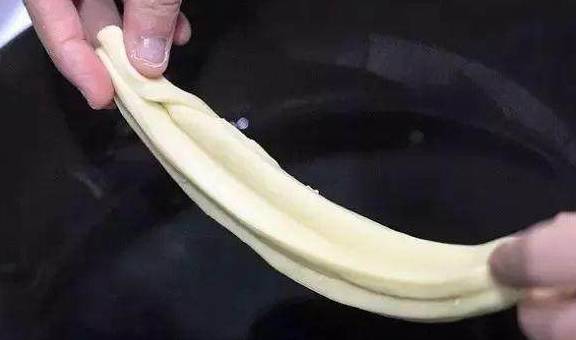 记住做油条胚子的时候,面团、案板、手还有刀上面都要抹油,以防粘连。