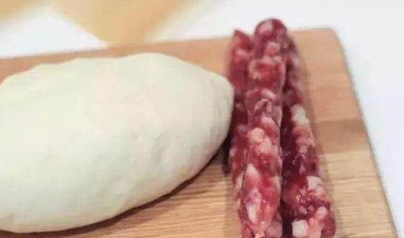 材料:面粉500g、酵母粉8g、腊肠、糖适量。