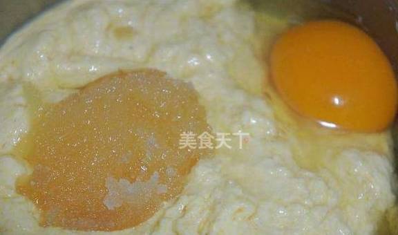 4.加入白糖、打入鸡蛋搅拌均匀。