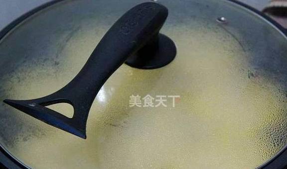 7.煎至用铲子能推动玉米面饼的时候,倒入半碗水,盖上锅盖焖至收干水分。