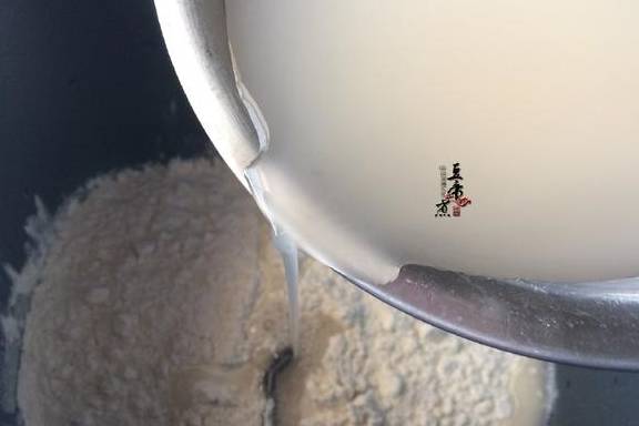 在卤肉炖煮的同时我们可以边做馍,把面粉加入盐和油搅拌下倒入加入酵母的温水搅拌搅拌揉和成团即可发酵