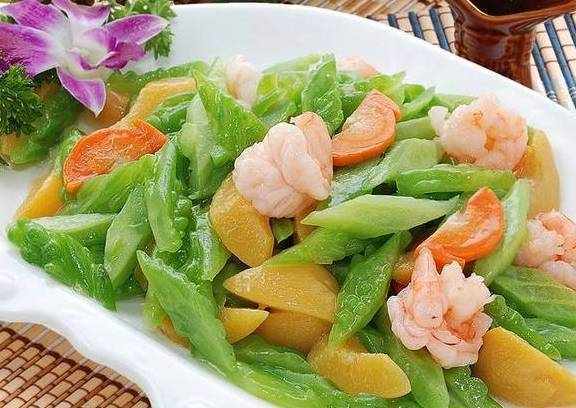 苦瓜拌虾仁主料:苦瓜2根、鲜虾200克调料:大蒜3瓣、花椒20粒、料酒、白胡椒粉、盐、糖、米醋适量