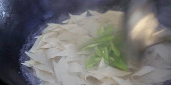 净锅加入适量水,烧开,下入主料,焯水至透,下入尖椒后倒出。