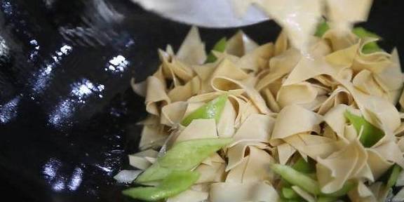 这个菜也可以放酱油,要把干豆腐炖软了才好吃,汤汁也可以在多一点