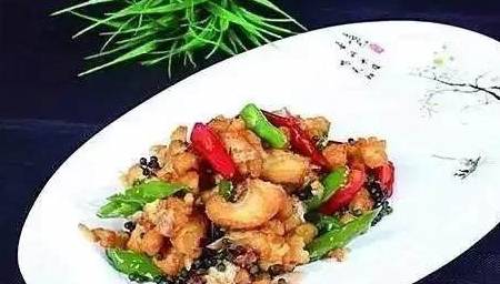 原料:银鳕鱼400克,青、红二荆条辣椒段共30克,姜、蒜片各5克,青花椒15克。