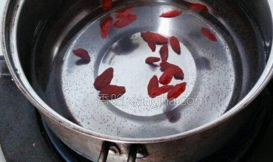 2.锅中放凉水,倒入枸杞煮沸