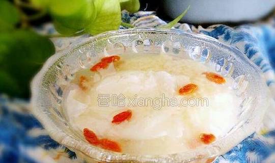 配料:酒酿适量、鸡蛋1个、枸杞适量烹饪步骤:1.准备食材