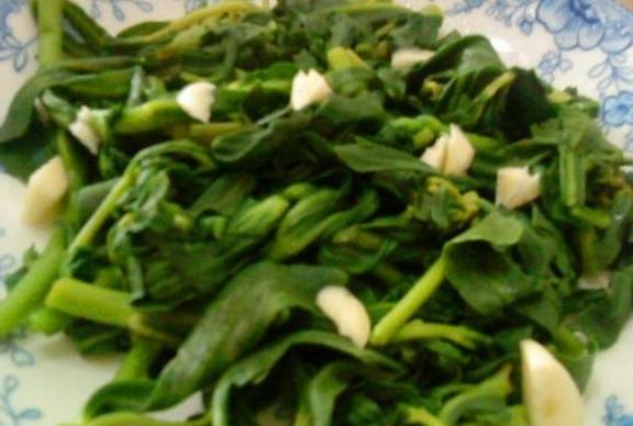 凉拌费菜材料:费菜嫩茎叶500克,精盐、味精、酱油、蒜泥、麻油