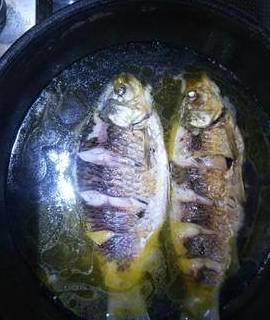 热锅倒油,小火煎鱼(煎鱼前可先用生姜在锅底摸一遍防止粘锅)。