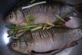 鲫鱼刮去鳞片、取出内脏(注意别弄破鱼胆),清洗干净。