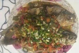 用料:鲫鱼2条(最好野生)、葱3根、姜6片、料酒2勺、盐3克、鲜小米椒8个、尖椒4个、蒜3颗、秘制辣酱1勺