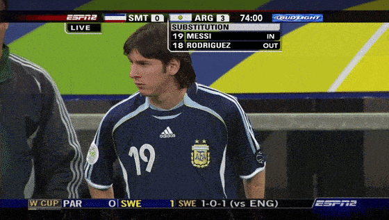 19岁初登世界杯:“现在是替补上场的是阿根廷小将梅西”响彻耳畔。梅西替补登场,并在有限的上场时间里,打进了一颗漂亮的进球。但在8强战中,他却只能枯坐板凳,眼睁睁地看着球队倒在东道主日耳曼战车的脚下。那届世界杯不属于阿根廷,更不属于梅西,他只是璀璨群星中一抹初升的亮光。