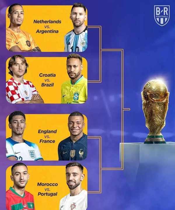 上半区:荷兰队VS阿根廷队 克罗地亚队VS巴西队