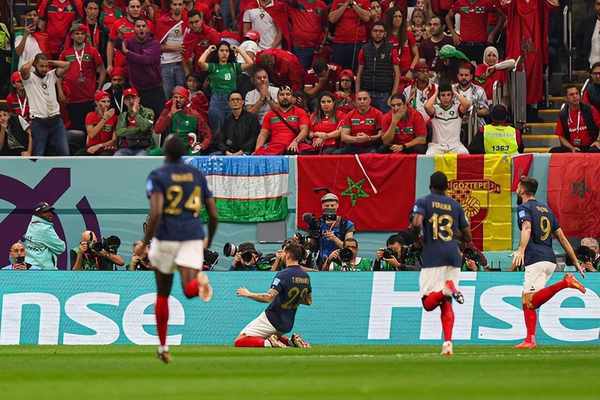 2022年世界杯半决赛将由法国队对阵摩洛哥队。上半场,法国队凭借特奥的凌空抽射首开纪录,随后吉鲁失去了在伊边再次交手的好机会,穆亚尼在44秒内做出了贡献。最终,法国队以2:0击败摩洛哥队,再次晋级决赛。12月18日,卫冕冠军法国队将与阿根廷队争夺世界杯冠军。