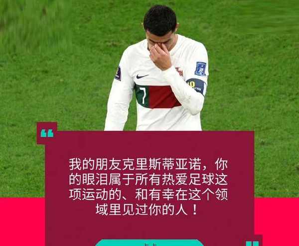 卡卡这条动态中,对与C罗的称呼,那句“Myfriend”如此轻柔,却又掷地有声。感觉浓缩了很多的爱和感同身受。正所谓英雄惜英雄,解说葡萄牙比赛的卡卡,最后那一刻,看见C罗在通道里哭泣,眼神瞬间心疼起来。热爱足球的他们,满是懂得、理解与共情。