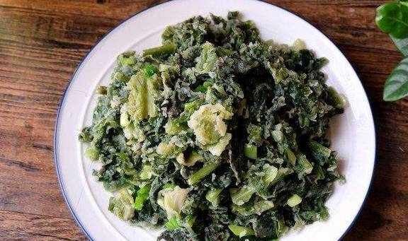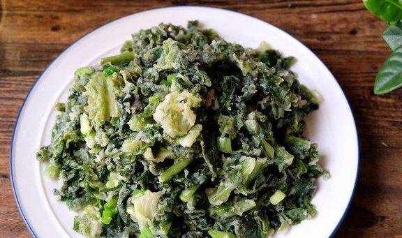 8、这样一盘蒸莴笋叶就可以上桌了,味道香,菜多,因为裹了面粉,还有一点点的嚼劲,炸过花椒和辣椒的油混合在莴笋叶之中,香味都拌进了菜里,每一口都值得细嚼慢咽,这样一盘我一个人就能包圆了。
