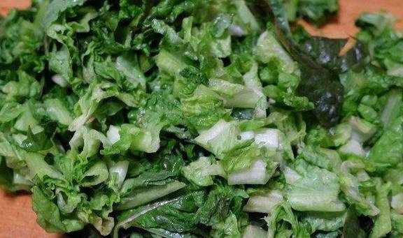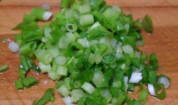5、香葱洗净后切碎,如果喜欢吃蒜味的,还可以切点蒜碎和香葱碎放在一起;