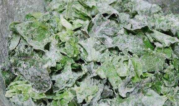 2、把切好的莴笋叶放在小盆里,倒进面粉;
