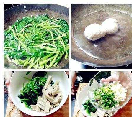 1、菠菜营养丰富,质感脆爽,搭配面筋,口感更加丰富,有层次。