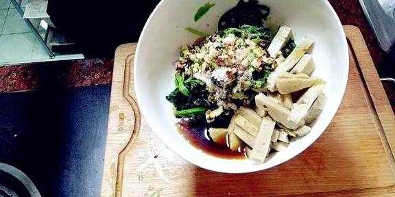1、菠菜焯水捞出沥干水备用(菠菜中含有大量草酸,所以应先焯水,否则会影响钙的吸收。)。