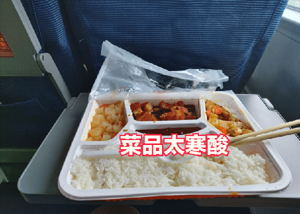 饭菜从高温迅速被降温后一直处于冷链保鲜状态,在给乘客吃之前,又要加热,来回反复搞来搞去,食材的口感风味自然就没有那么鲜美,例如一些嫩绿的蔬菜,结果变得黄不拉几,除了口感不佳,还影响食欲。