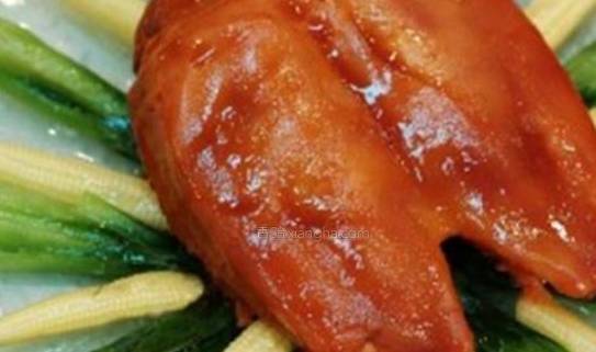 扒驼掌:骆驼全身都是宝,尤以驼掌最名贵。驼掌即四只大似蒲团的软蹄。驼掌即骆驼的掌。骆驼主要产于内蒙古荒漠草原地带,体形高大,肌肉发达,尤其驼峰和驼掌可作名菜。驼峰肉质细腻,丰润肥美,被列为饮食珍品之一,驼掌的味道也很鲜美,食之可强筋壮骨。"扒驼掌"配以菜心,荤素俱佳,肥而不腻,是秋、冬季补品之一"《红楼梦》第53回"乌进孝进租"时的进物单上,有"熊掌二十对"的记载,"扒驼掌"本为"扒熊掌",但因"熊"为野生保护动物,故以驼掌代能掌研制出这道"扒驼掌"菜从营养味道角度分析,驼掌虽然不如熊掌好,但经过烹制之后也独具特色,深受美食家欢迎和赞赏。