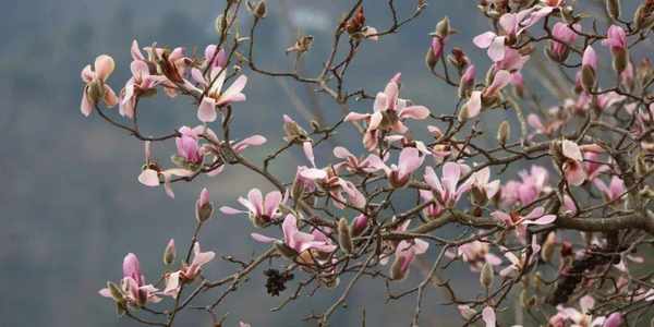 每年春天,辛夷花是第一个向人们报喜的,看着粉嫩的辛夷花,被冬日压抑已久的人们心情豁然开朗。辛夷花大小不一的挂满枝头,有大的如斗碗,有小的如茶杯,颜色也各不相同。漫山花开由白到粉、由粉到紫、由紫到红如诗如画,依山成势形成壮观的高山花海奇观。