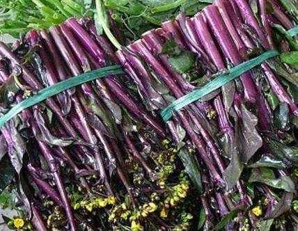 今天要说的就是【红菜苔】,可能很多人都没听过这个东西,今天就为大家科普下!红菜薹,别名紫菜薹、红油菜薹,它与广东菜心是属于同一变种,为十字花科芸薹属芸薹种白菜亚种的变种,一二年生草本植物,是原产我国的特产蔬菜,主要分布在长江流域一带,以湖北武昌和四川省的成都栽培最为著名。菜苔味甘、辛,性平。能活血散瘀,利肠道,止血,可以用于妇女产后瘀血腹痛的治疗,还对吐血,痢疾便血、大便秘结有很好的效果。此外,红菜苔是低脂肪蔬菜,富含膳食纤维,多食用可以降低血脂,降低胆固醇。