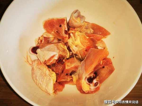 1、首先我们将一个大鸡腿,用清水洗净,浸泡10分钟,之后剁成小块,放入碗中。这里我用的鸡腿比较大,如果你家里的鸡腿比较小,可以用两个。