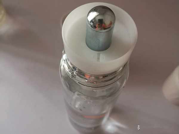 擰緊上面專用的蓋子,二氧化碳就會沖到杯子中,和水融合。