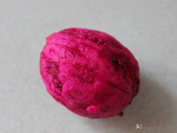這時我們處理紅心火龍果,先去掉紅心火龍果的外皮。紅心火龍果營養豐富,它含有一般植物少有的植物性白蛋白以及花青素,豐富的維他命和水溶性膳食纖維。紅心火龍果中維他命C和鐵的含量很豐富,可以潤腸通便、改善貧血等,是很不錯的一種水果。
