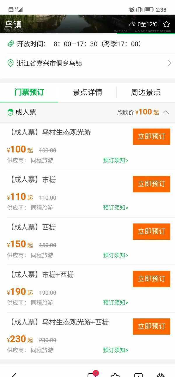 乌镇的西栅跟东栅两个景区门票分别是150元和110元,游两个景点至少需要花290元,这还只不过是门票费,进到景区之后,要感受里边的旅游项目,离不开乘船,感受江南风情的景色,可是便宜的船也做到了60元一人,而且在旅游旺季是必须排长队等待的,至少也需要排长队1个小时以上,这里的民宿一般都在500元以上,纯净水5元,若要感受人文风情,一天花吊顶了最少有900元。景虽美,却能让游客感到钱包肉疼。