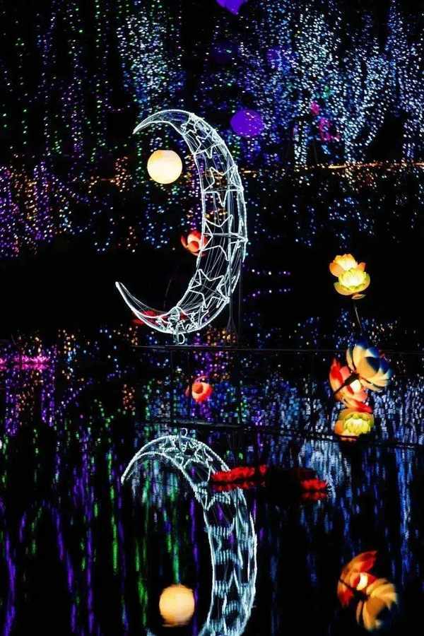 荣获2022深圳光影艺术季活力商圈奖的深圳甘坑古镇,以“共至光年”为主题,结合小凉帽农场的自然田园风光、凤凰谷的幽静古朴质感,创新打造小凉帽灯笼节之“绿野奇幻夜”,包含迷雾森林、田园印象、田野音乐会、荷塘月色、花灯大道、凤凰来仪、变色稻草龙等20余个灯光主题,让游客在田园诗般的光影艺术中感受甘坑古镇之美,在光与影、自然田园与古风建筑中穿越时光。