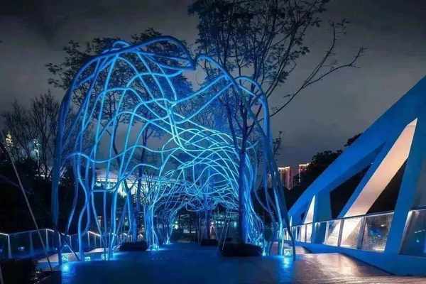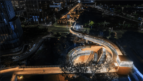 深圳欢乐港湾致力于丰富人们的夜间文化生活,打造宜居、宜业、宜游的湾区城市公共空间。滨海廊桥作为国内首个地下、地面、地上三层立体复合城市绿廊,通过构建立体多元的公共空间,将滨海活力延伸至城区内,成为湾区开放、共享、生态的城市公园新标杆。