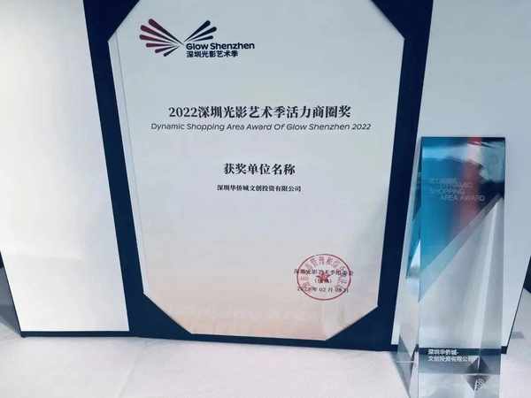 ▲深圳欢乐港湾摘得2022深圳光影艺术季活力商圈奖等两项大奖