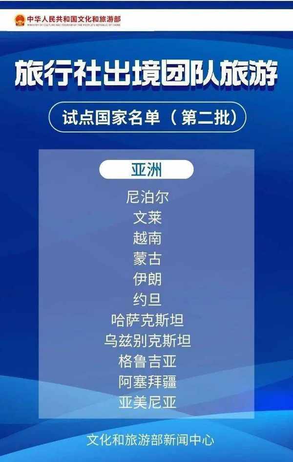 据文化和旅游部官方微博@文旅之声 刚刚发布的消息,第二批恢复出境团队旅游国家名单来了!