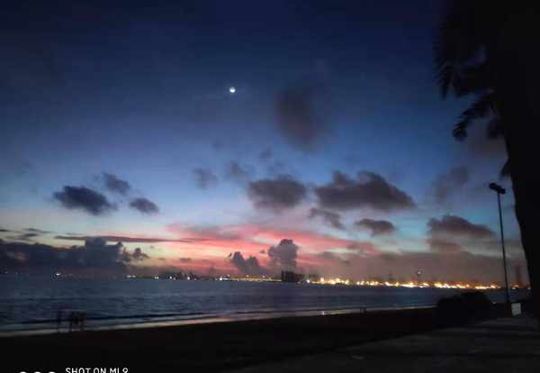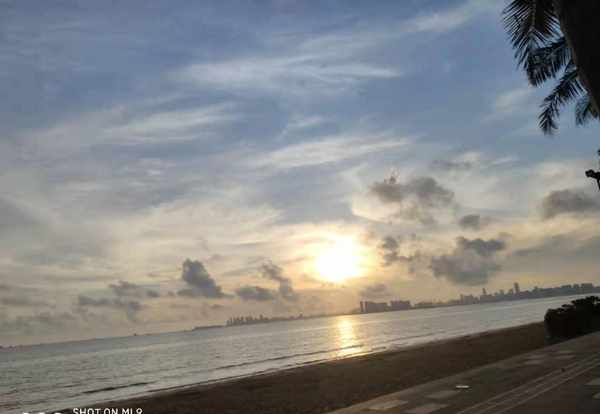 那次去的时候,本来想再去看一次日出。可惜天公不作美,竟然刮起了台风。55,我的日出没有了,只能等下次再来看了!给你们再看一下准备刮台风的海口,发现没有日出的假日沙滩也很美!如果有空的小伙伴们,可以来海口假日海滩看看,领略一下大海别样的美!