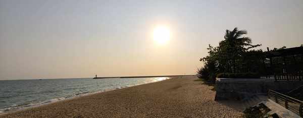 就这样沿着海岸一直走着,不知不觉,天就暗了下来。走回到酒店外边的时候,遇到一外卖小哥,我请教这位路径最熟的帅哥。