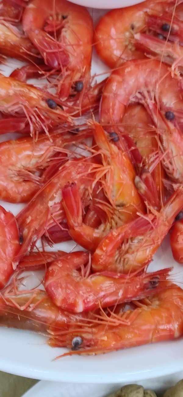 这些店铺看起来更像是大排档,售卖方式很有特点,有一个托着盘子卖凉菜的,一碟20元,有落花生、油炸花生米、皮蛋、拌黄瓜,大约七八个品种,她们在几家店铺之间来回游走售卖。店铺里是四人小桌子,里面有几张圆桌。有个小哥带着菜单来点菜,我点了几个家常菜,同来的朋友喊我跟着小哥去点海鲜。