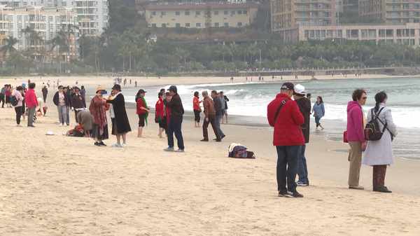 导游 宋先生:我们团队是从北京过来的,主要是来到海陵岛这边度假的,因为海陵岛相对环境也比较好,相对的硬件设施的话可以说比中国其他海岛来说相对会齐全一点,吃、住、行等等这些都会比较完善,现在北方太冷了,所以很多老人家来到这里,选择在这里度假,气候比较适合。