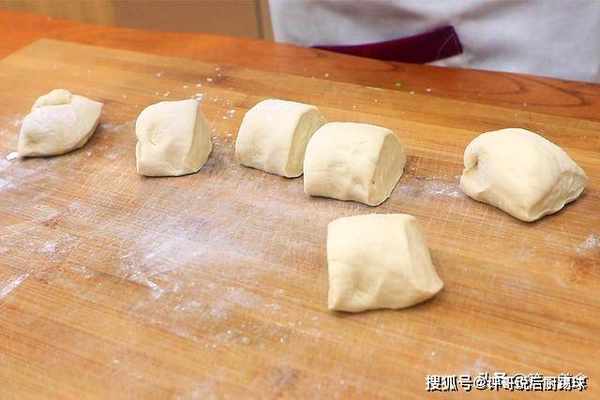 发酵好的面团内部呈现蜂窝状,我们在案板上撒上底面,把发酵好的面团取出,多揉一会排出里面的空气,然后把面团搓成长条,切成大小均匀的面剂子。