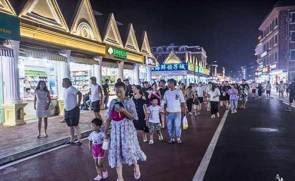 店铺和人行道仿佛约定好了,最亮的灯一起点亮,沿着小街小巷向四面八方延伸,一派热闹景象。人们纷纷被吸引到这里,白天安静的街道顿时变得热闹起来。