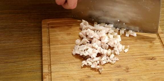锅内底油,下五花肉煸炒。
