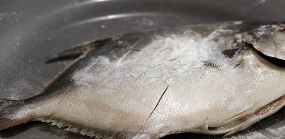 鲳鱼去内脏,去鱼鳃,洗干净鱼内部的黑膜(这个会很腥)。